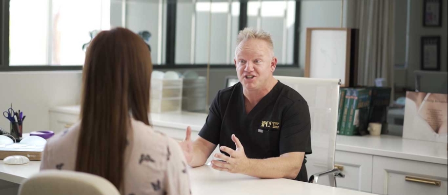Fat grafting or breast fat transfer involves liposuction to areas of the body and uses fat transfer technology to re-administer the fat to the breasts. The procedure generally takes fat from areas such as the lower abdomen and inner thighs. Fat transfer surgery should be performed under general anaesthetic with a fully qualified anaesthetist in an accredited hospital. Dr. Richardson operates alongside a team of fully qualified anaesthetists who have been working with him for over 18 years.